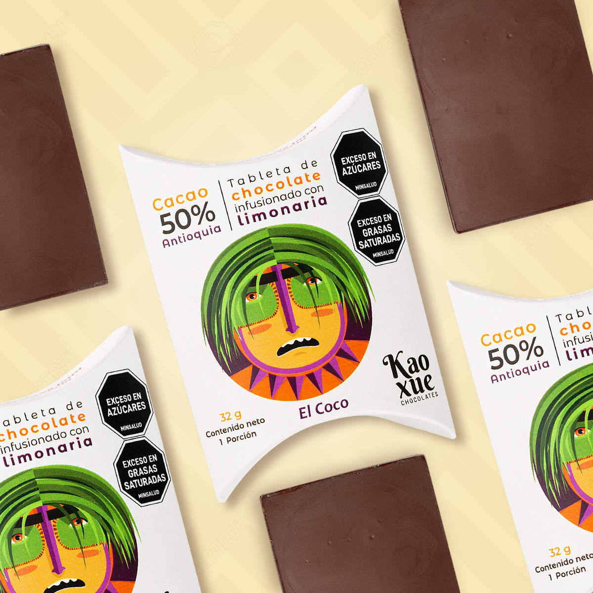 | Descripcin | Contiene dos tabletas de chocolate al 46% de cacao infusionadas con limonaria. Peso neto: 32 gramos. |